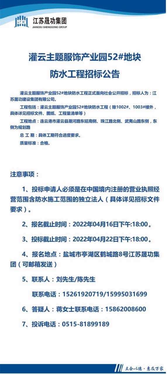 灌云主題服飾產業(yè)園52#地塊防水專業(yè)分包工程