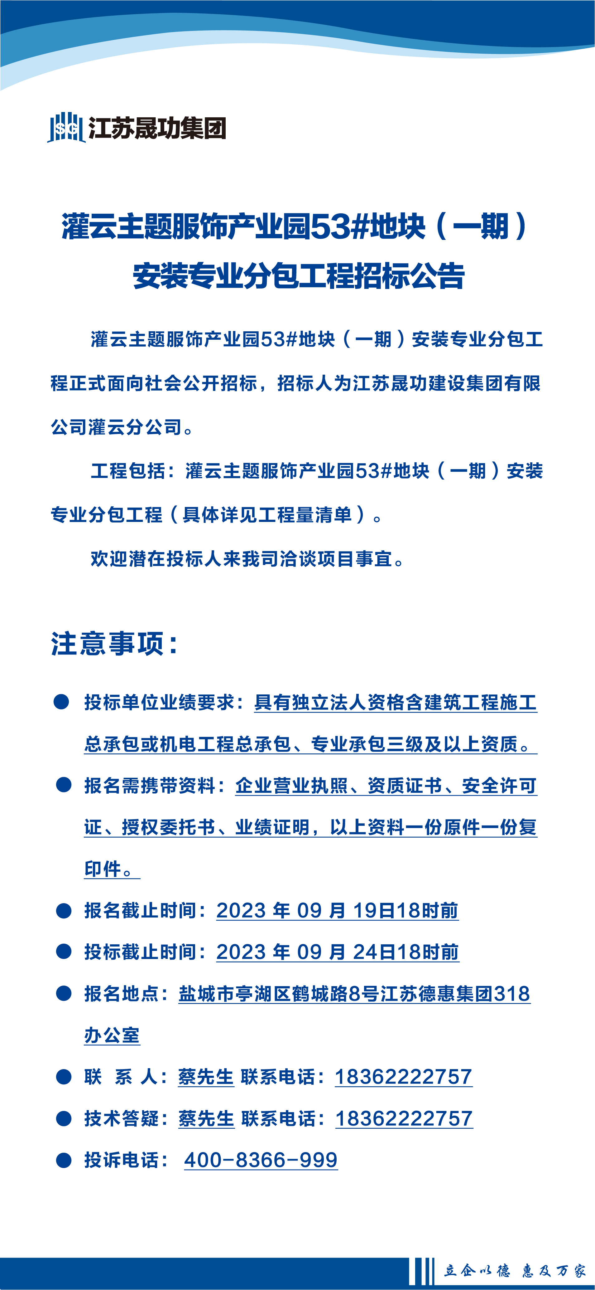 灌云主題服飾產(chǎn)業(yè)園53#地塊一期一標段安裝專業(yè)分包工程