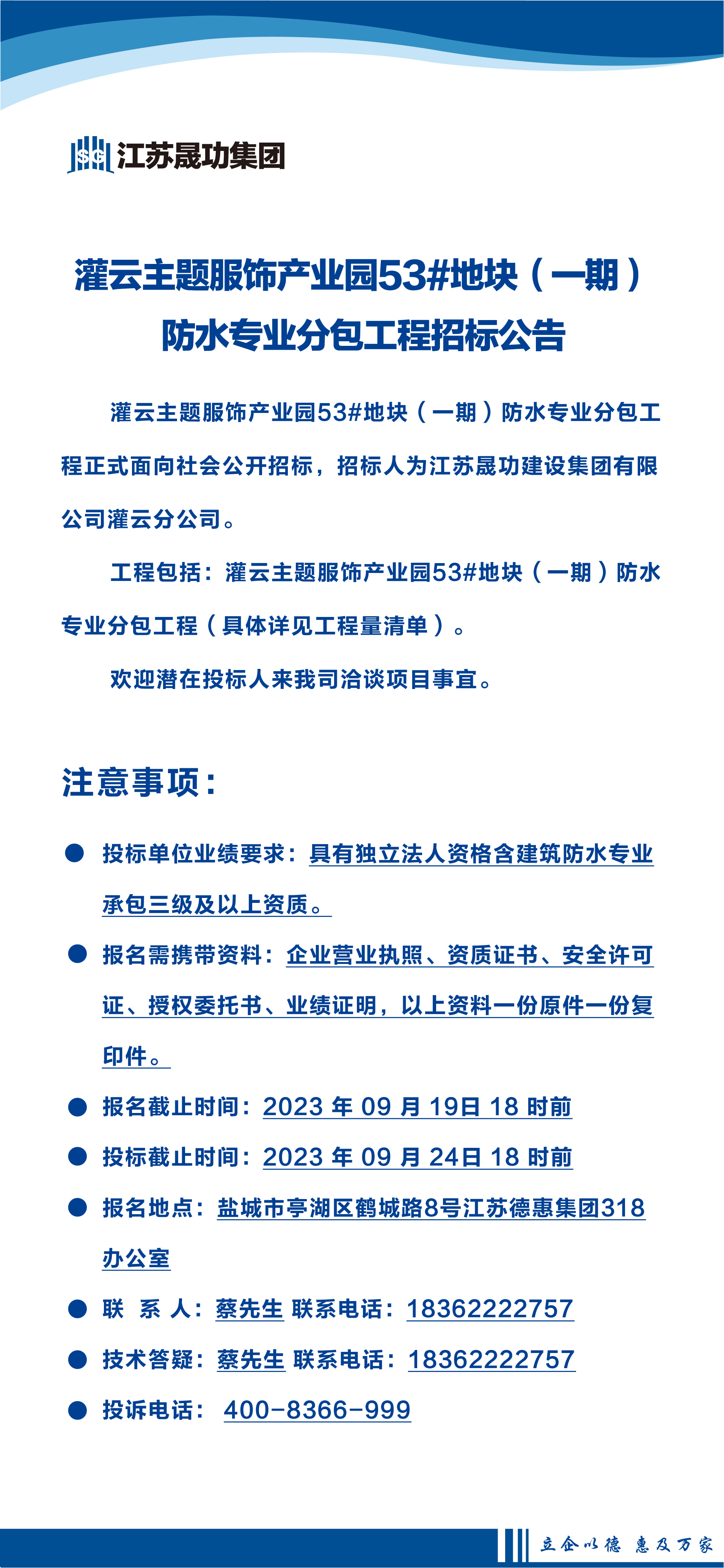 灌云主題服飾產(chǎn)業(yè)園53#地塊一期一標(biāo)段防水專業(yè)分包工程