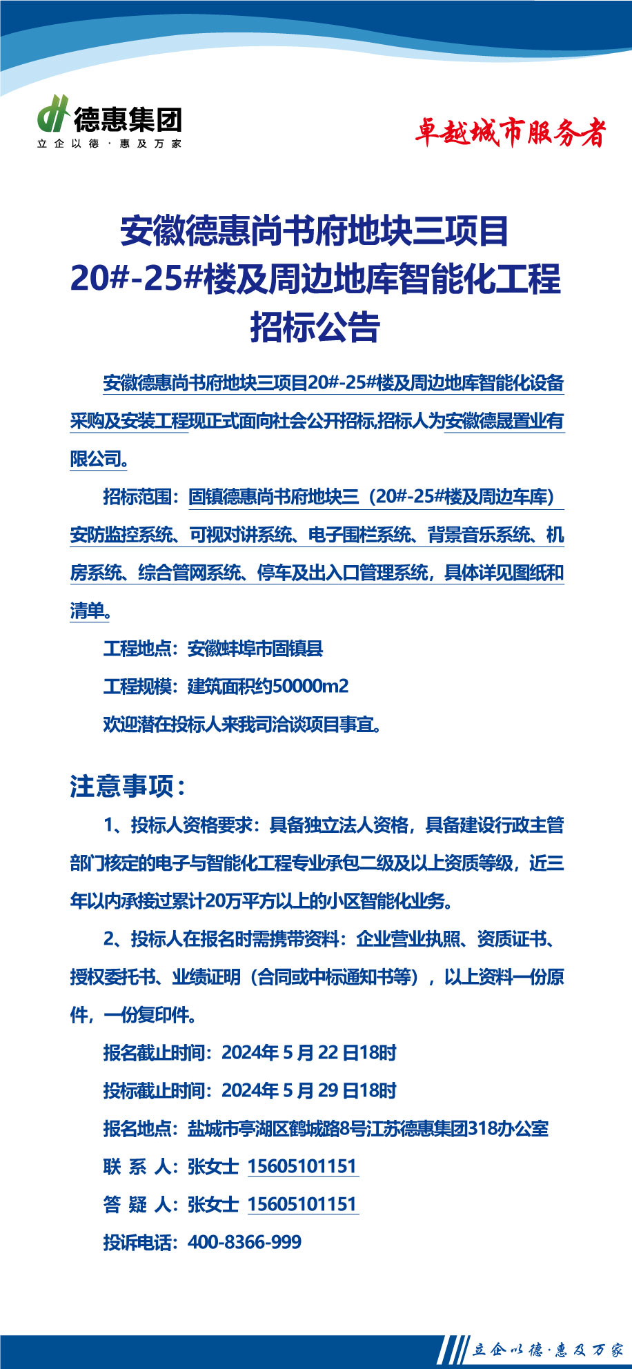 安徽固鎮(zhèn)德惠尚書府地塊三(20#-25#樓及周邊車庫)智能化設(shè)備采購及安裝工程