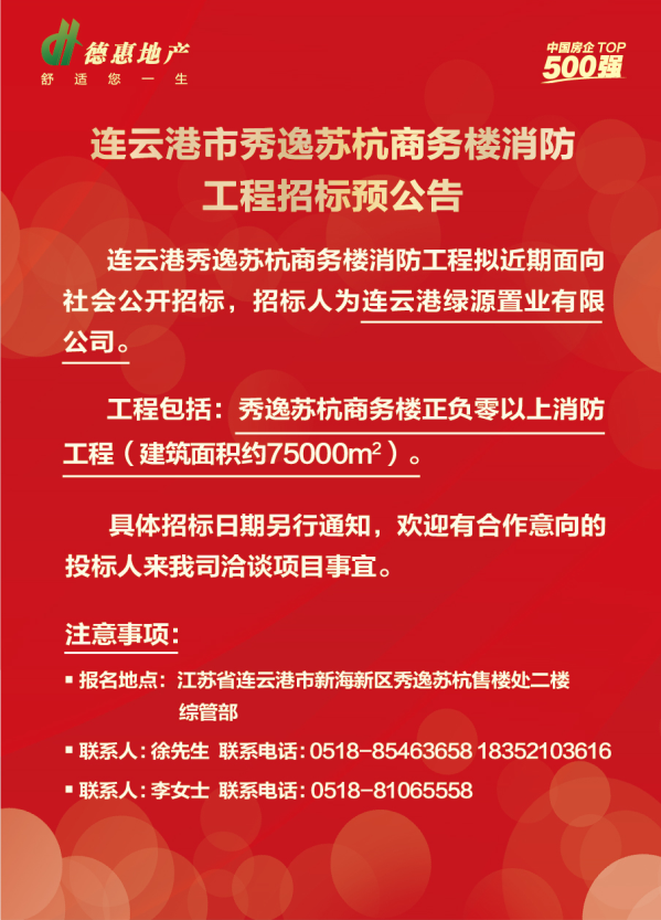 連云港 德惠·秀逸蘇杭商務(wù)樓消防工程招標公告