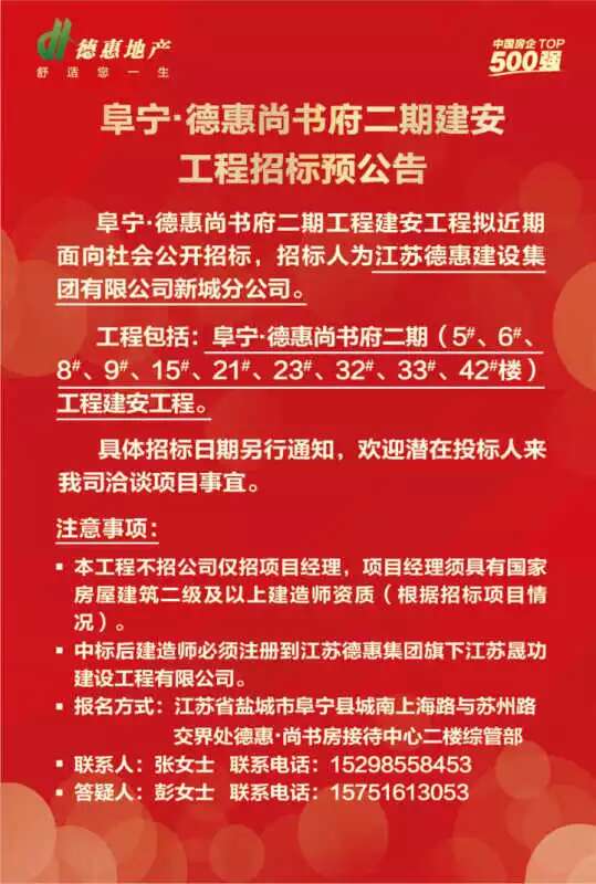阜寧德惠·尚書府二期建安工程招標(biāo)公告