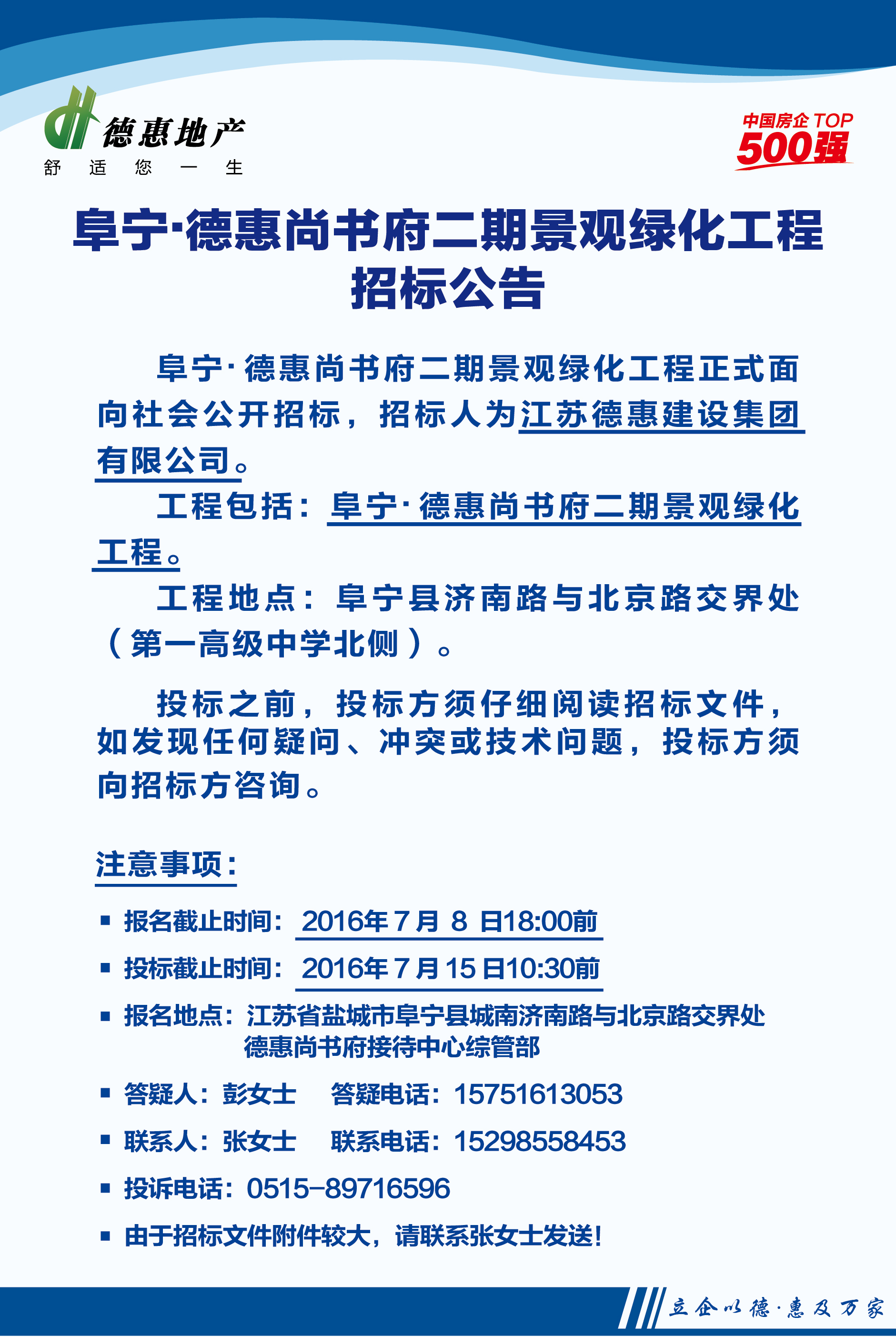 鹽城德惠·尚書房通信公建配套工程招標公告