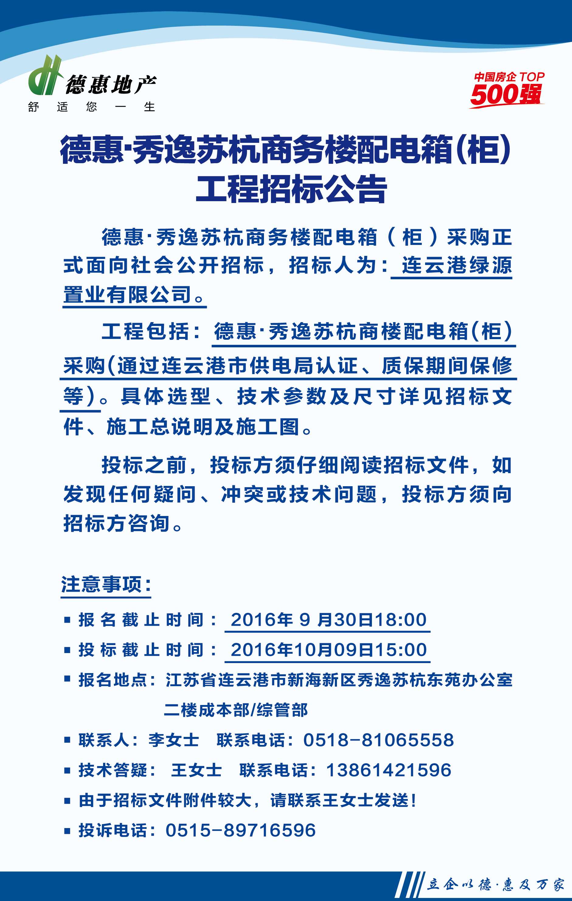 連云港德惠·秀逸蘇杭商務(wù)樓配電箱(采購)工程招標(biāo)公告