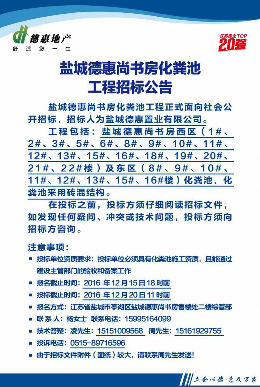 鹽城德惠尚書房化糞池工程招標(biāo)公告
