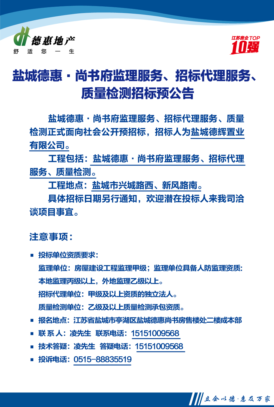 鹽城德惠·尚書府監(jiān)理服務、招標代理服務、質量檢測招標預公告