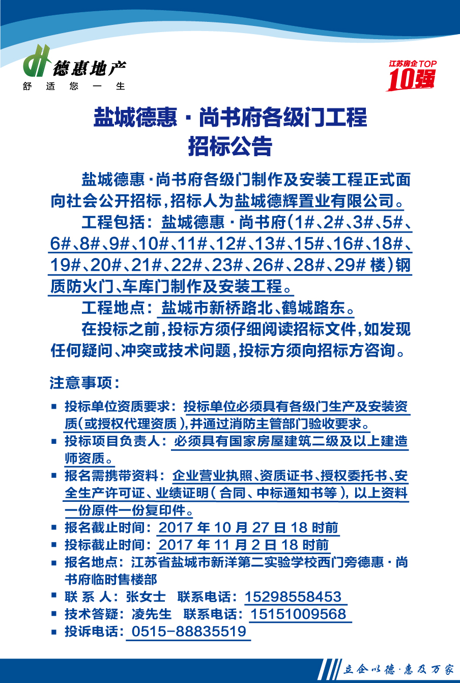 鹽城德惠·尚書府各級門工程招標公告