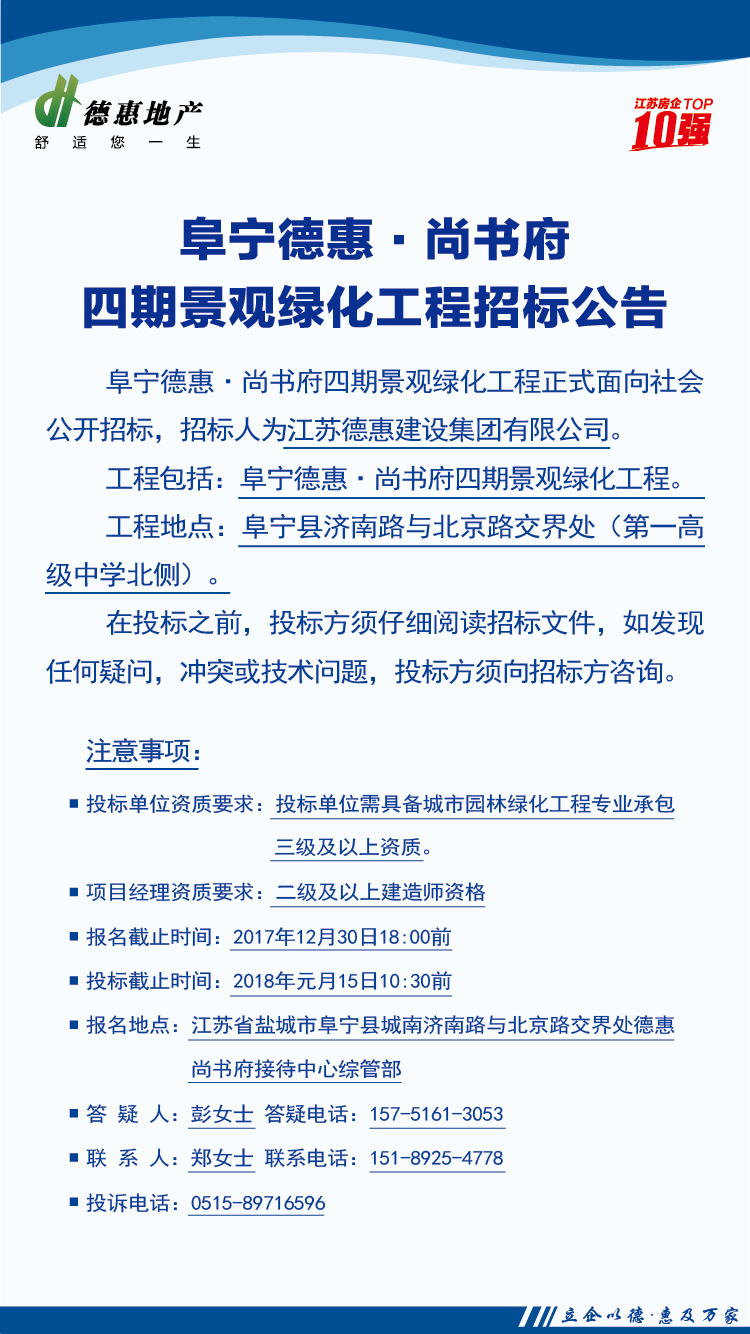 阜寧德惠·尚書府四期景觀綠化工程招標公告