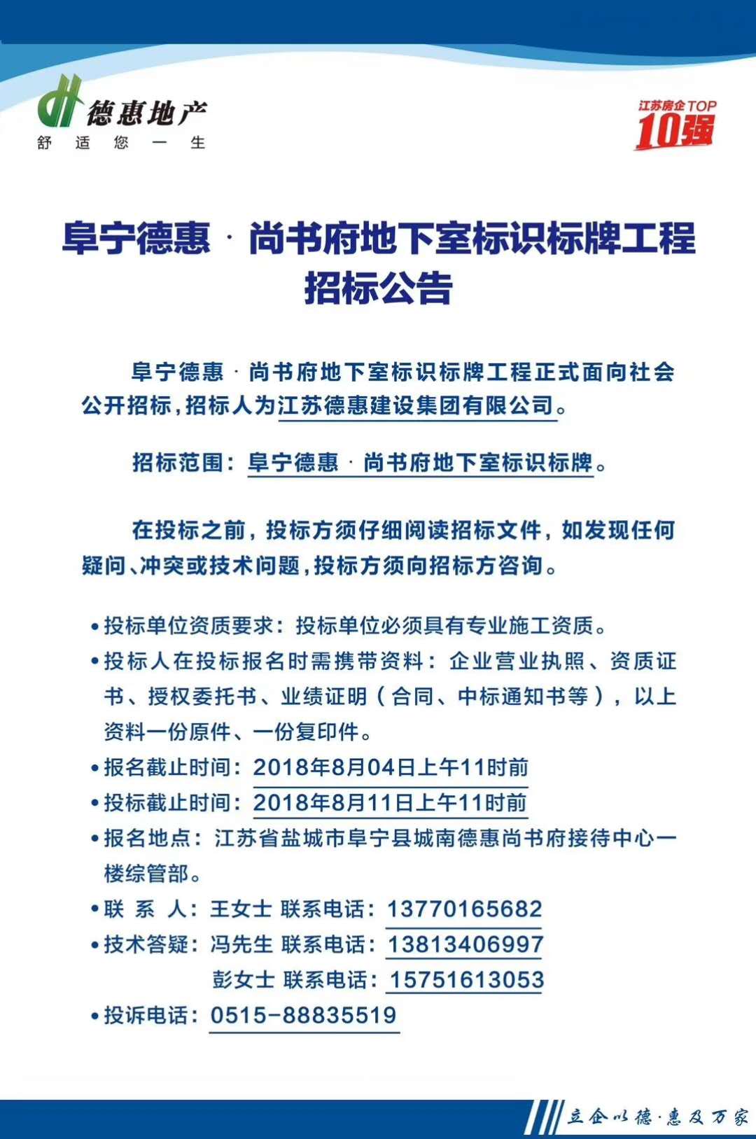 阜寧德惠·尚書府地下室標(biāo)識(shí)標(biāo)牌工程招標(biāo)公告
