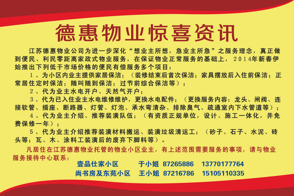 德惠物業(yè)便民服務,無憂生活!