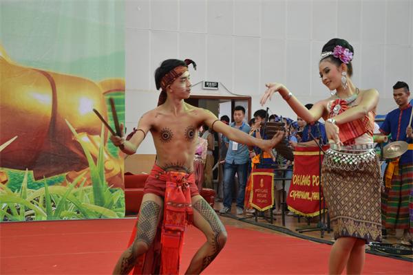 牛歌是廣大勞動(dòng)人民在長(zhǎng)期勞動(dòng)實(shí)踐中的藝術(shù)創(chuàng)作,是一種非物質(zhì)文化遺產(chǎn)。趕著牛兒,揚(yáng)著皮鞭的場(chǎng)景已經(jīng)一去不復(fù)返,抑揚(yáng)頓挫的牛歌也逐漸淡出人們的記憶,現(xiàn)在人們都很難再聽(tīng)到這支穿越時(shí)空,傳承著數(shù)千年農(nóng)耕文化的聲音,也難以體會(huì)到那曾經(jīng)久久地回蕩在天地之間的牛歌號(hào)子。然而就在今天,來(lái)自國(guó)內(nèi)外的藝術(shù)團(tuán)體為我們呈現(xiàn)了一場(chǎng)別致的文化盛宴。牛歌號(hào)子在舞臺(tái)的上空回旋,手中的皮鞭打響了又一場(chǎng)耕種,年輕人歡悅的身影再次重現(xiàn)了牛耕的場(chǎng)景。斯里蘭卡珍寶舞蹈學(xué)院藝術(shù)團(tuán)和印度薩維姆·恩汝提文化學(xué)院的舞者們都赤著雙腳跟隨著節(jié)拍,帶著全場(chǎng)一起走進(jìn)他們的民族文化,在斯里蘭卡和印度,跳舞要脫掉身上的鞋子、手表等物品,以示對(duì)神靈與來(lái)者的尊重。除此之外,俄羅斯、埃及、泰國(guó)等7個(gè)國(guó)家藝術(shù)團(tuán)體也給我們呈現(xiàn)了屬于他們自己的民族風(fēng)情,讓我們感受到了不同民族的藝術(shù)魅力。