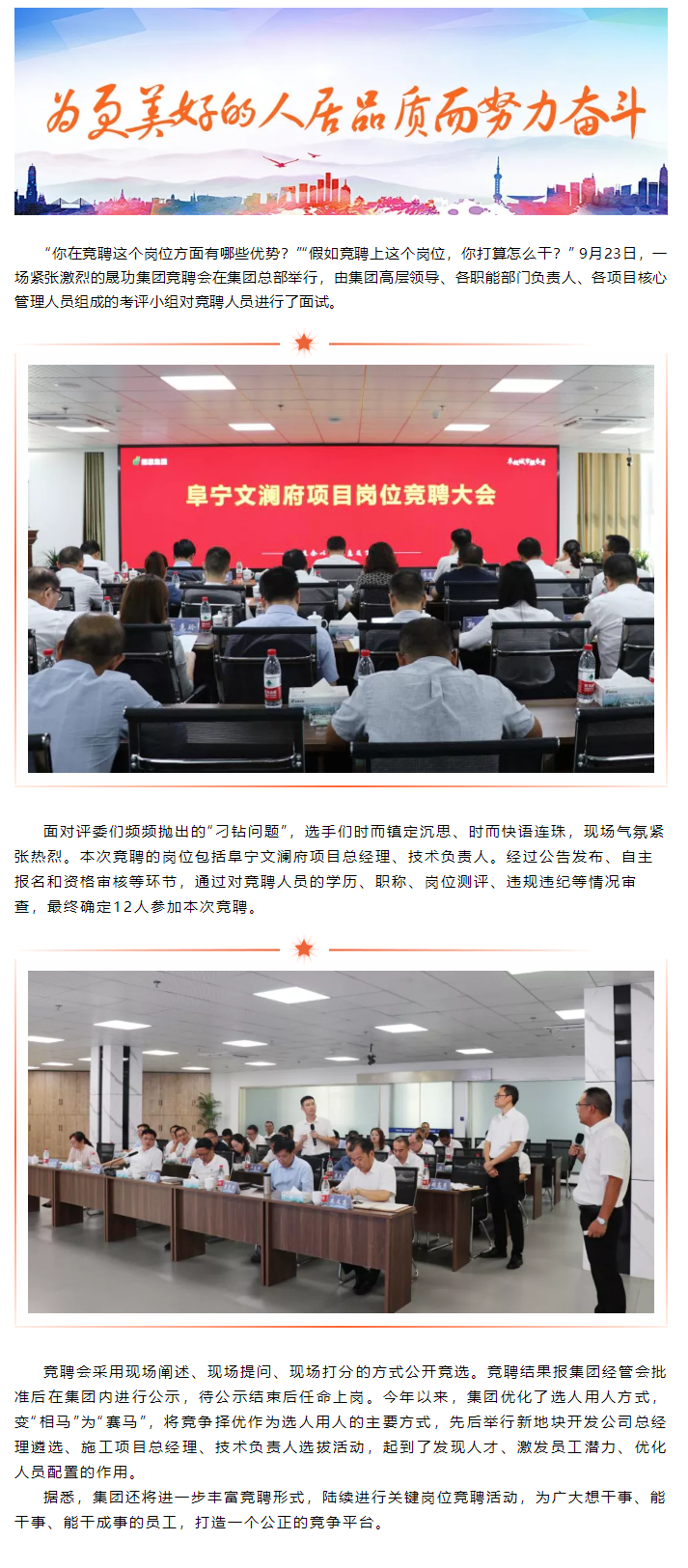 百舸爭流 奮楫者先 ——阜寧文瀾府項目總經理、技術負責人競聘活動成功舉辦