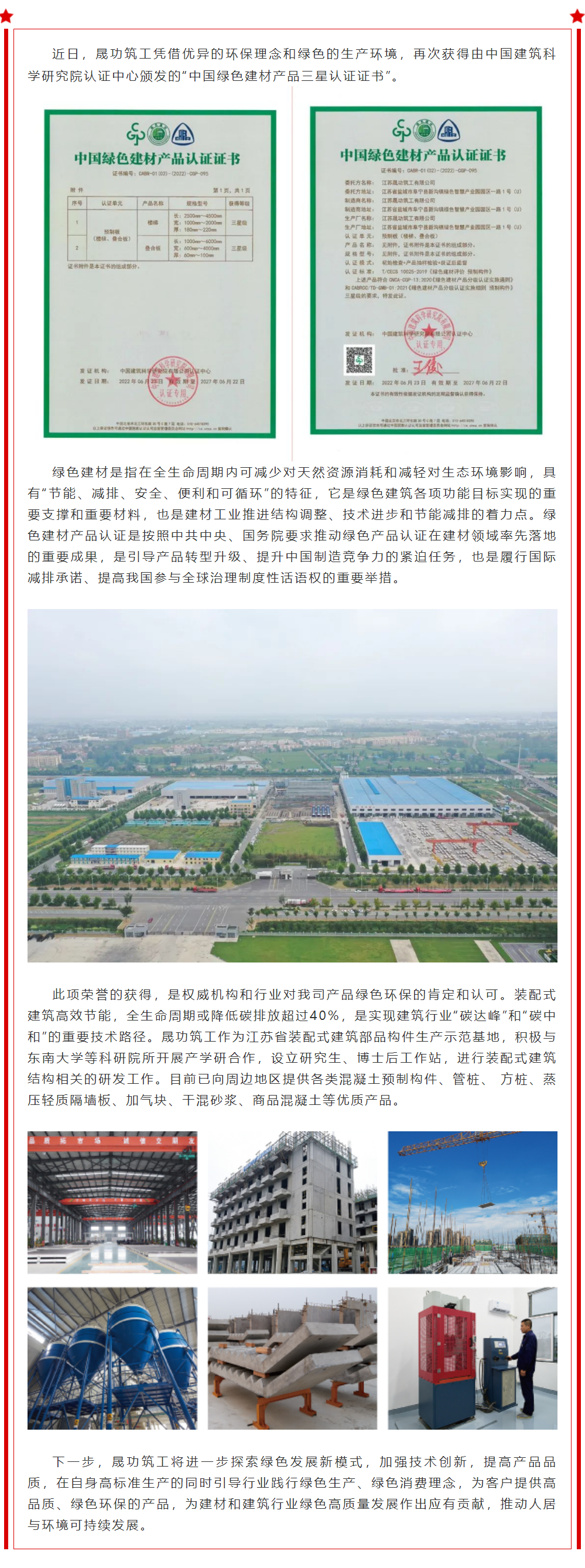 再獲殊榮 | 江蘇晟功筑工有限公司順利通過(guò)“中國(guó)綠色建材產(chǎn)品”三星級(jí)認(rèn)證