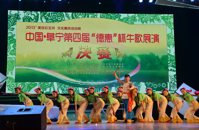 5月17日,各地牛歌實(shí)力唱將齊聚阜寧,巔峰對(duì)決。大賽分為原生態(tài)牛歌(選手自演自唱,未經(jīng)人工雕琢,將現(xiàn)實(shí)版的牛耕場(chǎng)景搬上舞臺(tái))、藝術(shù)牛歌(將傳統(tǒng)牛歌進(jìn)行藝術(shù)加工,形成完整的曲譜節(jié)拍)。賽事緊張激烈,盛況空前。臺(tái)上選手們競(jìng)相角逐,臺(tái)下觀眾座無(wú)虛席,現(xiàn)場(chǎng)氣氛幾度被推向高潮。 省內(nèi)外代表隊(duì)巔峰對(duì)決